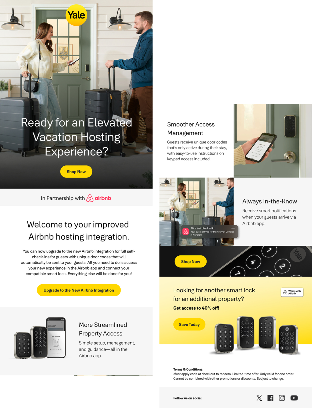 Educate Airbnb hosts on the benefit of using a Yale Smart Lock while generating sales and avoiding user scroll fatigue.